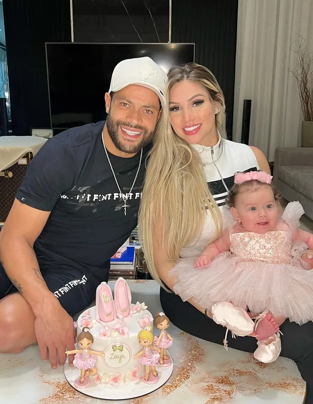 O jogador e Camila, que desde o final de 2019 e se casaram em 2020, são pais Zaya, de 6 meses de vida. Hulk tem outros três filhos, Ian, de 13 anos, Tiago, de 11, e Alice, de 6, com a ex-mulher, Iran Ângelo, tia de Camila.
