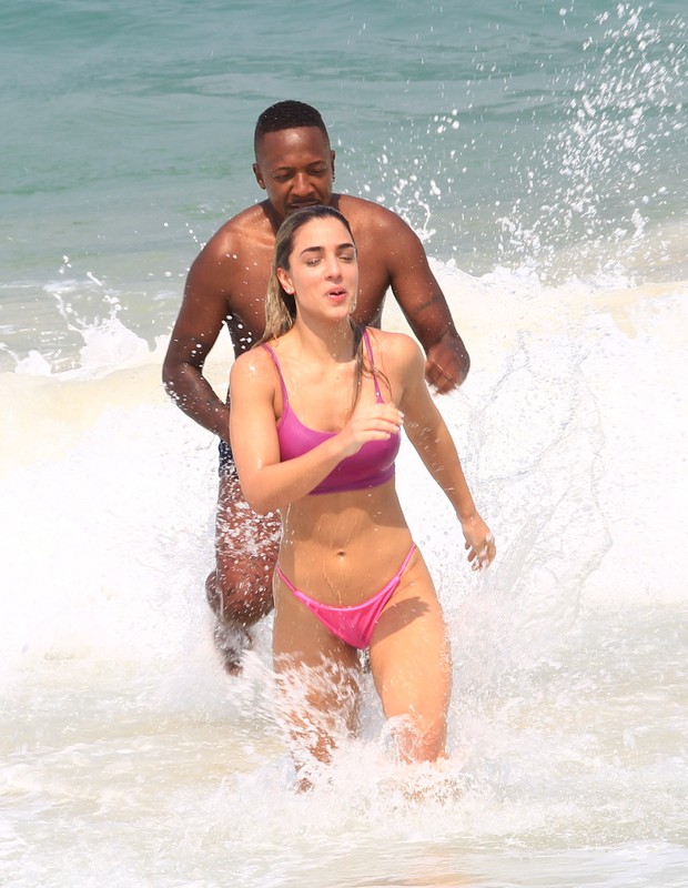 Mumuzinho e Thainá Fernandes aproveitaram o dia de sol para ir à praia da Barra da Tijuca no Rio de Janeiro. Após se exercitarem na areia, os dois se refrescaram em um banho de mar, vivendo momentos de reconciliação após superarem a separação.