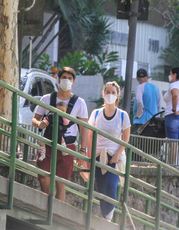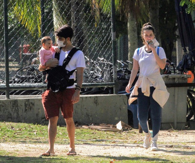 Nathalia Dill e noivo são clicados em passeio com a filha, Eva, no Rio