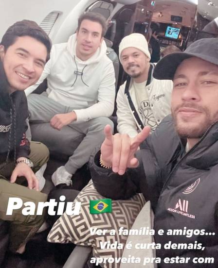 O atleta retornou ao Brasil com os "parças" e Bruna Biancardi, seu affair, que estava passando uns dias com ele em Paris. Os dois, inclusive, participaram juntos de uma festa de Halloween por lá na semana passada.