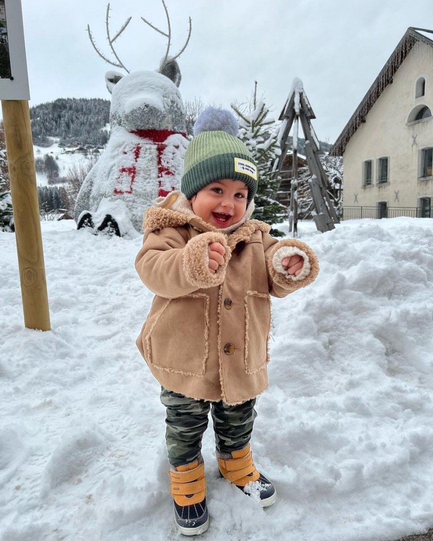 Sthefany Brito contou como o filho Antonio Enrico reagiu ao ver neve pela primeira vez. A atriz curte férias em família na França.