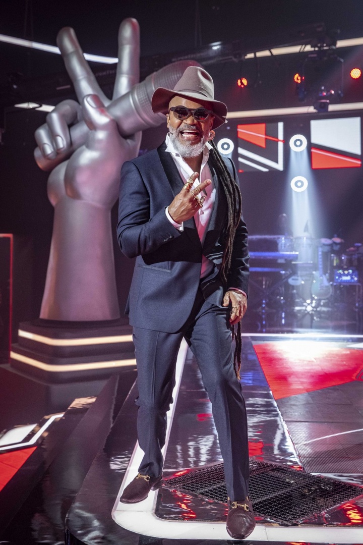 Depois de anos somente com dreads, o técnico resolveu inovar. Nas Audições às Cegas, ele aparece com uma parte do cabelo raspada, no estilo moicano, e os já famosos dreads. É muito estilo, Brasil! Sente só? Para completar, terninho azul escuro e um chapéu para dar mais charme ao visual.