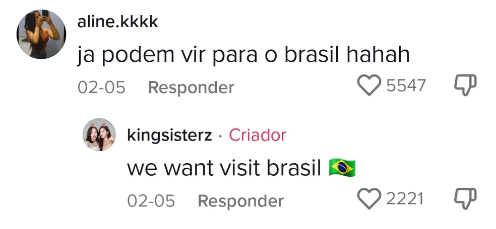 Na publicação das coreanas, muitos seguidores brasileiros marcaram o cantor Leo Santana nos comentários para chamar a atenção do dono hit e convidaram as Kingsisterz para conhecer o Brasil. Em resposta a uma fã, as dançarinas disseram que tem vontade de conhecer o país.