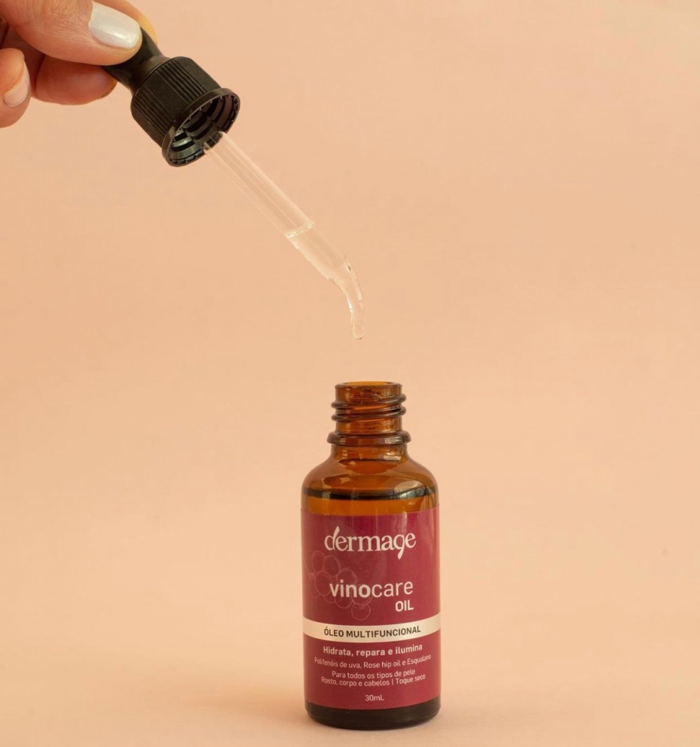 O Vinocare Oil, enriquecido com óleo de rosa mosqueta, Resveratrol e Esqualano, promove a hidratação e reparação para a pele e cabelos. Dica: adicione duas gotas à sua máscara capilar e potencialize o resultado!