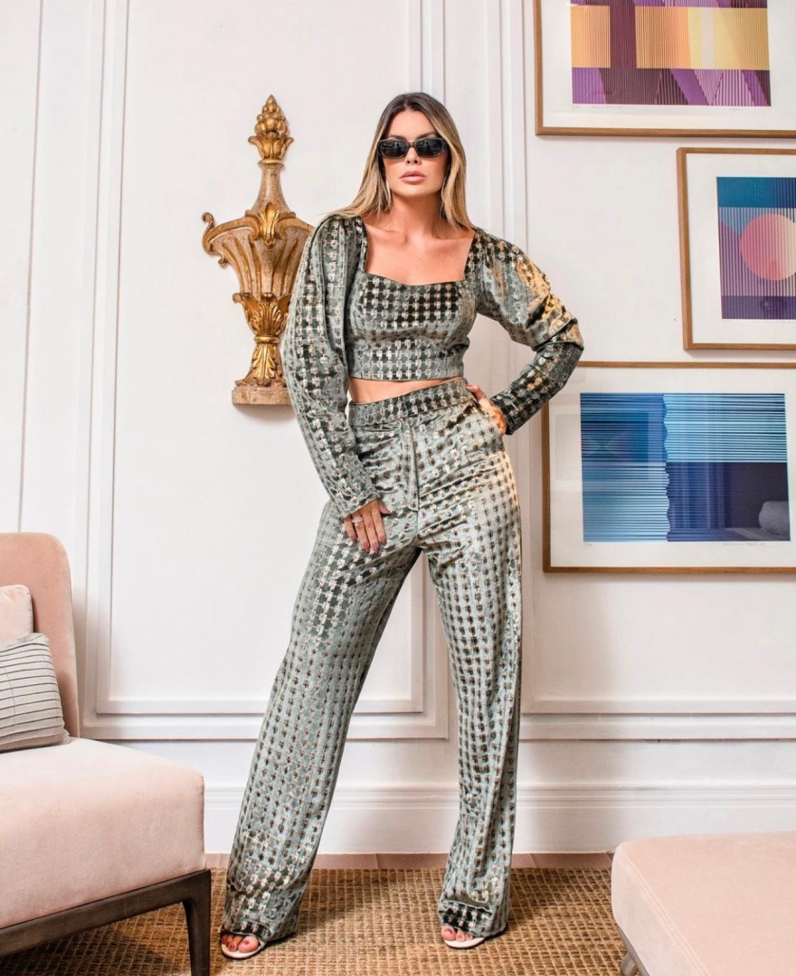 Esse conjunto de veludo, com a calça e o cropped no Xadrez. Super confortável e muito elegante. Me conte se vocês gostaram também.