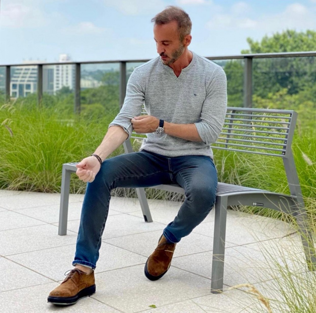 Estou realmente ‘amarradão’ nessa minha nova camisa que parece de jeans mas é malha.