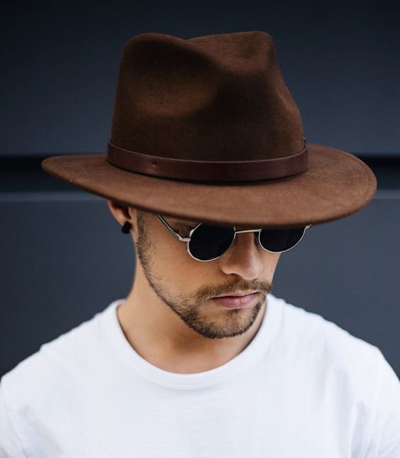 O trilby tem essa cara mais jovem e descontraída, embora já tenha dividido as atenções com o Fedora em décadas passadas. É aquele chapéu que você pode usar para sair descompromissadamente com a galera ou para compor um look mais arrumadinho em um evento bacana.