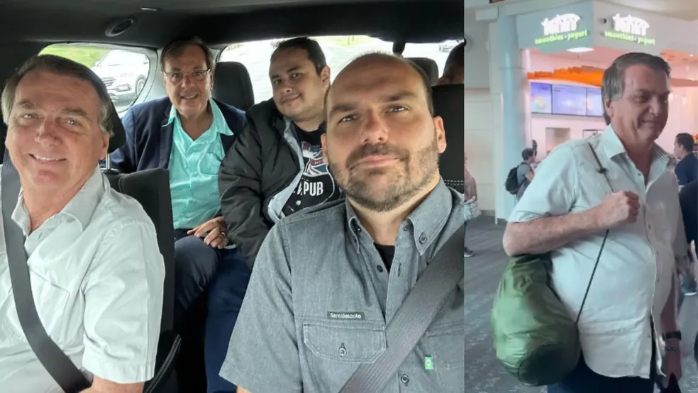Ao lado de Gilson Machado e Eduardo, Bolsonaro viaja para Nashville — Foto: Reprodução