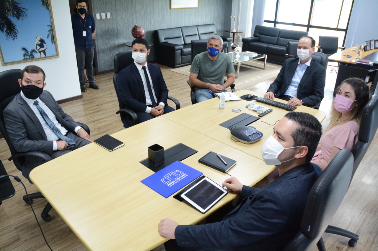 O presidente do Tribunal de Justiça de Roraima, desembargador Cristóvão Suter, reuniu juízes titulares de comarcas do interior do Estado para discutir a ampliação do programa Justiça Cidadã. Na tarde desta sexta-feira, 19, o desembargador recebeu os juízes Cleber Gonçalves, de Pacaraima, Rafaella Holanda, de Caracaraí, Noêmia Cardoso, de Rorainópolis e Raimundo Anastácio, de São Luiz. Também participaram da reunião o juiz auxiliar da Presidência, Bruno Costa, o secretário-geral do TJRR, Felipe Queiroz, e o coordenador do Núcleo de Projetos e Inovação, Alcenir Souza. Outras reuniões já foram realizadas para tratar sobre a implantação de um Posto Avançado de Atendimento nos municípios de Normandia e Uiramutã. O primeiro polo do programa foi instalado na comunidade indígena Waimiri-Atroari, em agosto deste ano, e a previsão é que um novo Posto Avançado seja inaugurado ainda neste ano.Foto: Nucri TJRR