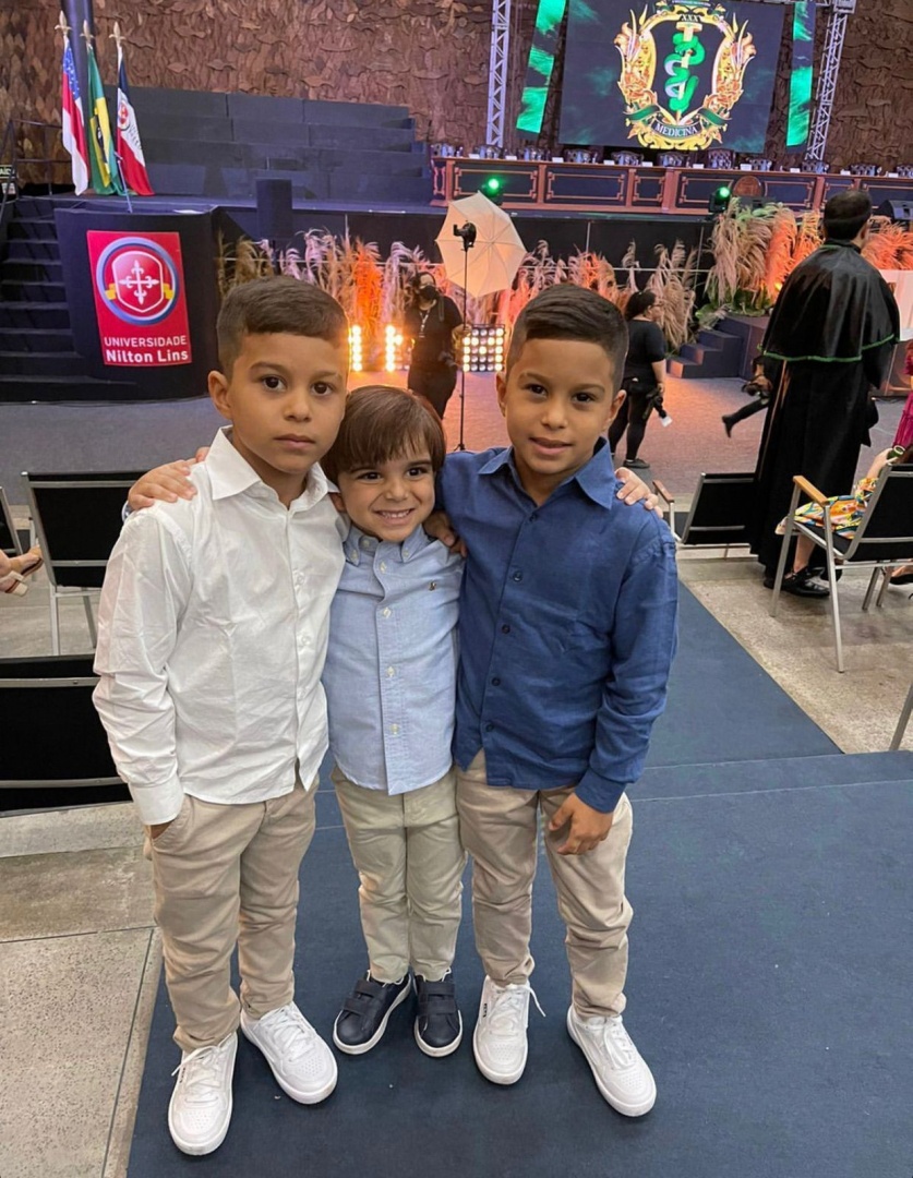 O professor e faixa preta de jiu-jitsu João Paulo Azevedo e seus filhos os gêmeos Bento, João e o Pedro. Todos os campeões de jiu-jitsu na copa 2022 no último domingo, 17 de julho. Deixando nossa página ESPECIAL. Vamos ver muitos cliques deles por aqui. Foto Reprodução/Instagram @massoterapeutajoaoazevedo